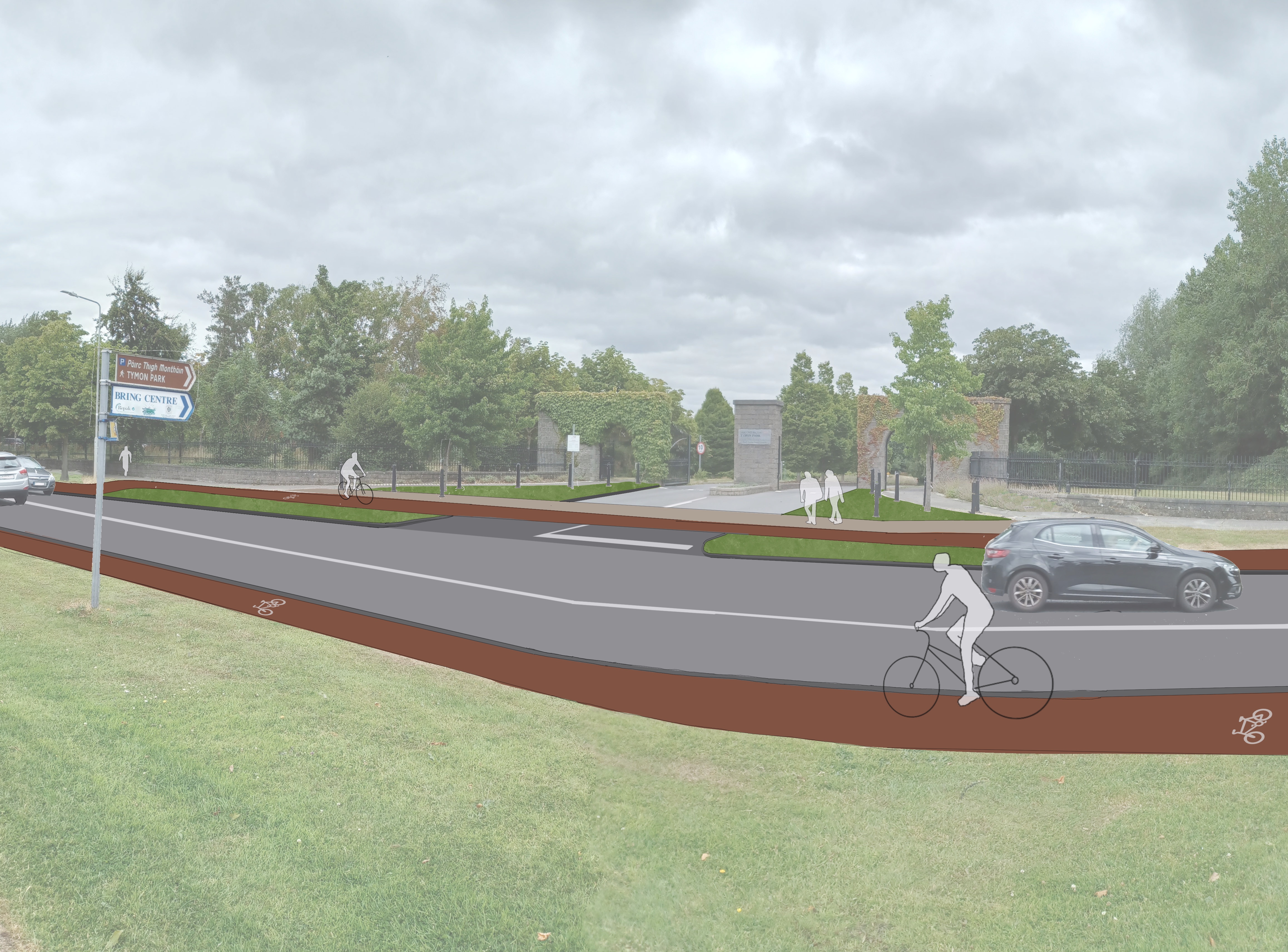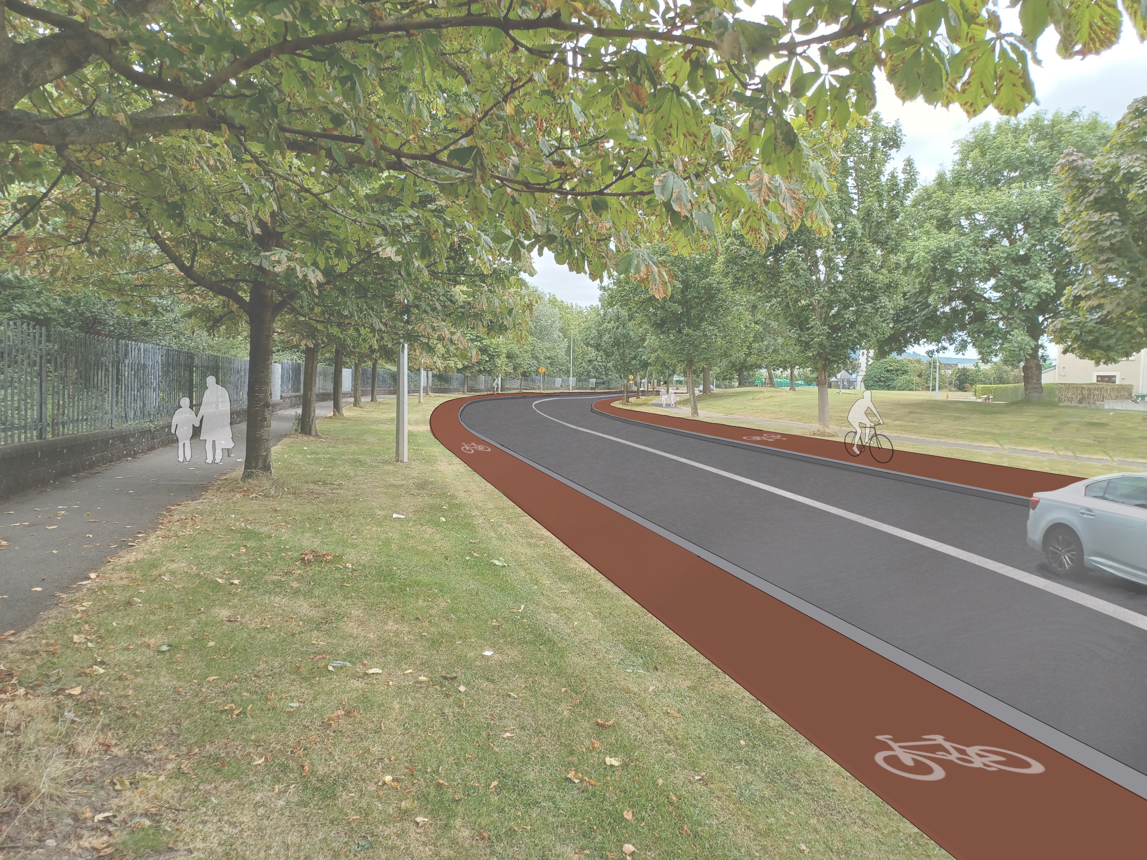 The proposed equitable distribution of the road will allow the delivery of 2-way traffic and for raised cycle tracks to be added to the edges of the road. The proposed improvement to junctions joining Castletymon Road will provide safe crossings and connections for walkers, cyclists, and motorists.