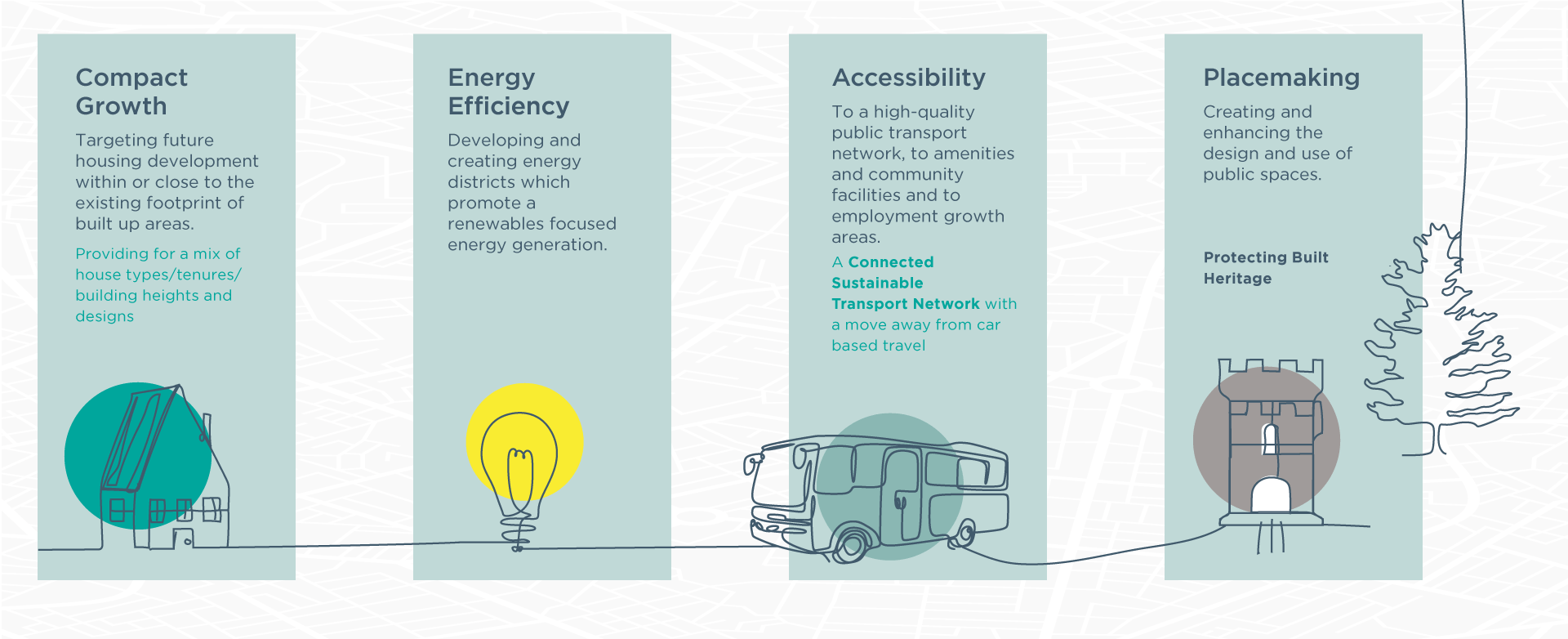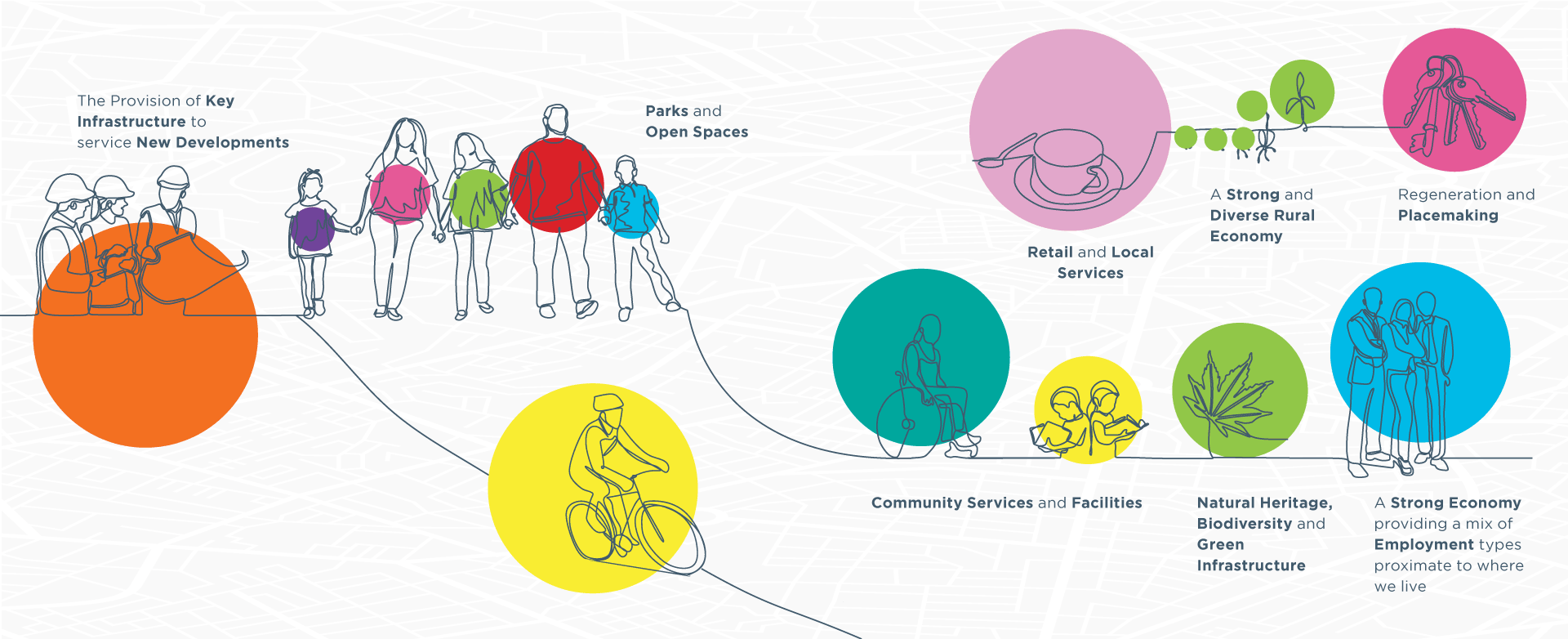 The Development Plan will set out the framework to guide future development. A focus will be placed on how we live, how we work and how we protect our environment in a manner which results in the creation of great places and a sustainable and resilient development pattern for the overall county.