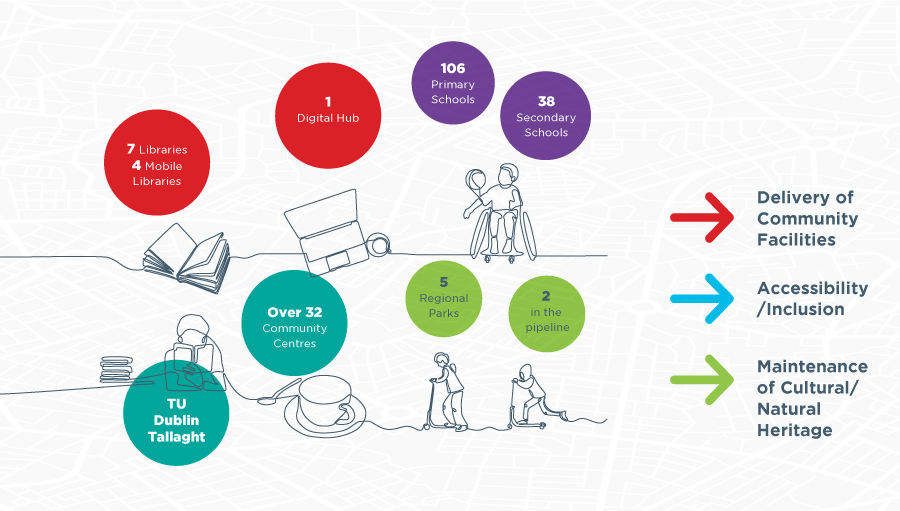 South Dublin has a broad range of community services across the county. Since 2016, 8 new primary schools and 1 new secondary school have been delivered across the county. Planning permission has also been granted for the expansion of TU Dublin - Tallaght Campus. New libraries are to open soon in Tymon and North Clondalkin. Recreation facilities are being upgraded with a new swimming pool approved for Griffeen Park in Lucan.