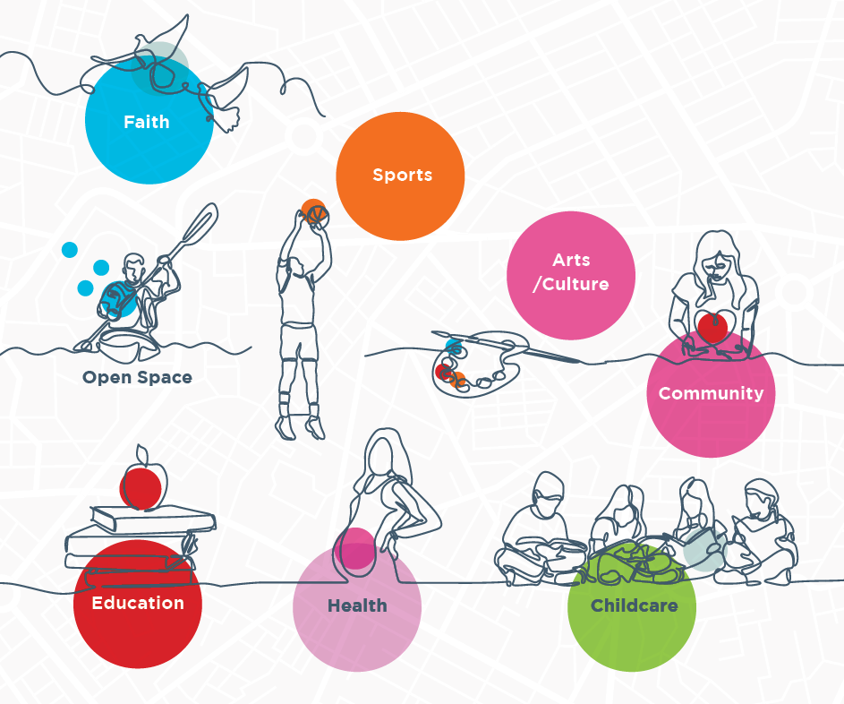Community infrastructure facilities themselves can provide a platform for community and social interaction. Ideally such facilities would be provided within each area within the county and accessible to all citizens. Creating a more socially inclusive county by alleviating social exclusion, poverty and deprivation is a challenge which needs to be a policy consideration for all themes within the Plan. The integration of planning with social, community and cultural requirements of an area is one of the considerations which will be important in the Plan making process.