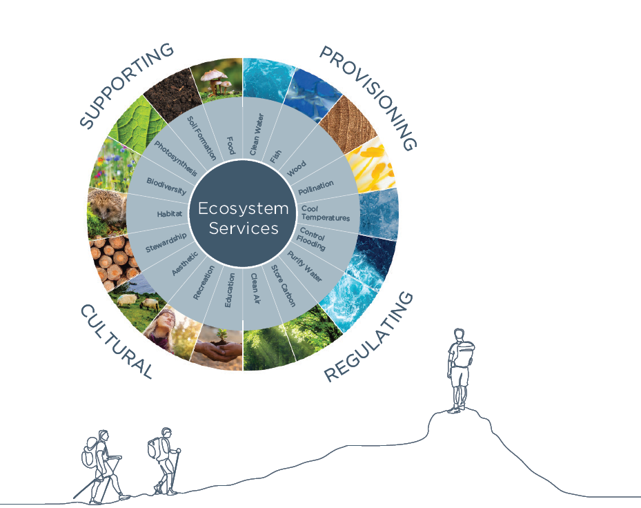 Research has shown that most of the Ecosystem Services in Europe are judged to be ‘degraded’ — no longer able to deliver the optimal quality and quantity of basic services such as crop pollination, clean air and water, and control of floods or erosion. The Ecosystems Services approach recognises that a well-planned interaction between humans, the economy and the environment can aid in protecting and managing ourenvironment, support our survivaland promote a better quality of lifefor us all.