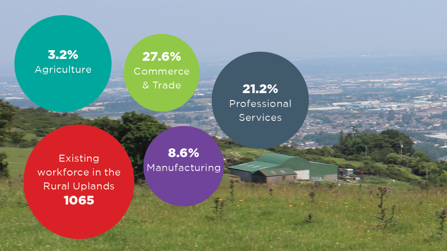 Employment opportunities in the rural/uplands area are centred around rural enterprises, extractive industries, agricultural developments and amenity facilities.
