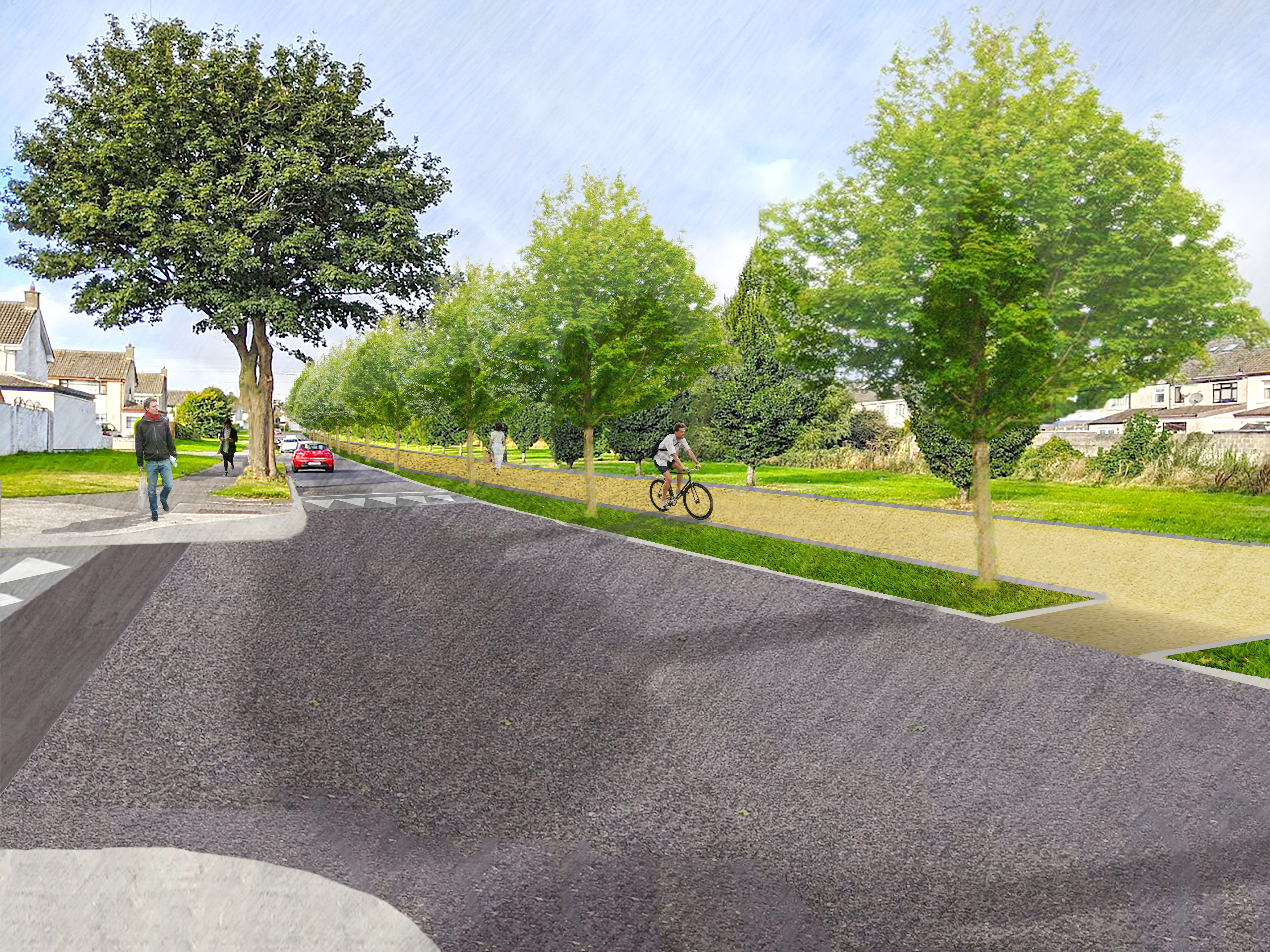 This scheme will be progressed under Section 38 of the Road Traffic Act, 1994. This section of the Act contains the legislation under which new traffic calming and cycling infrastructure is developed. Typical works carried out under s38 powers include road narrowing, speed cushions, footpath build outs, cycle tracks, bus corridors. Delivering these works under s38 powers does not require planning permission.