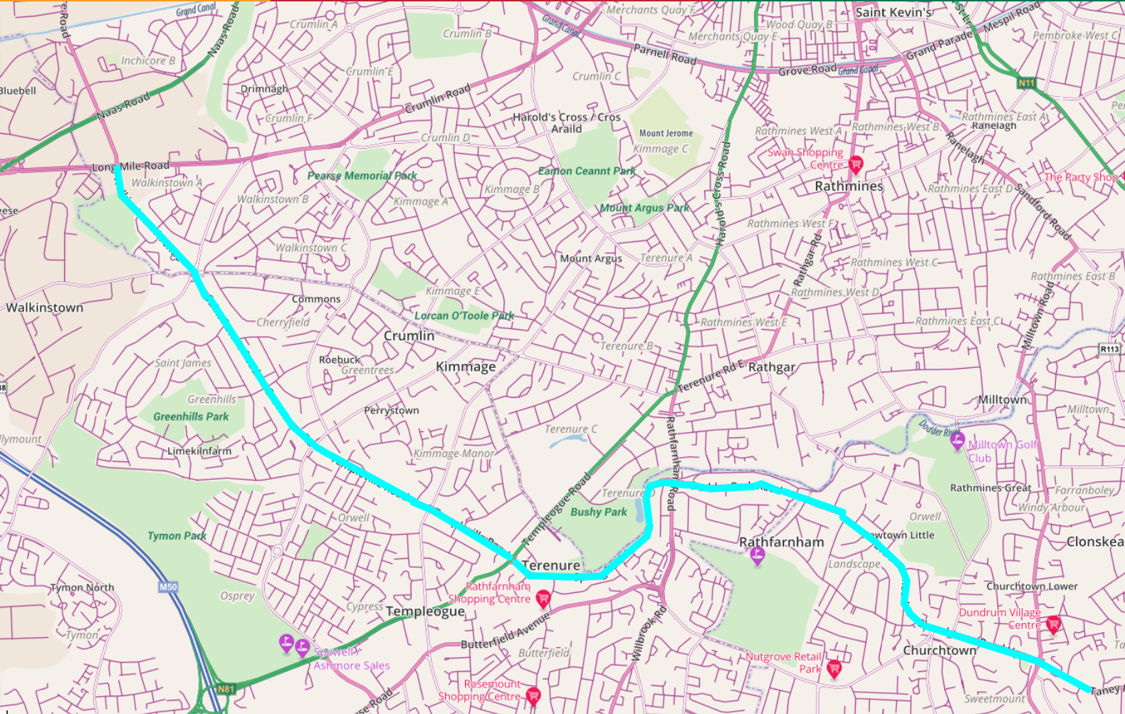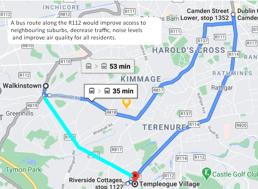 1) Addition of new S5 orbital bus route along the R112 (Walkinstown Avenue-Dundrum) to be added to New Dublin Bus Area Network as part of Bus Connects Network Redesign and single fare structure.